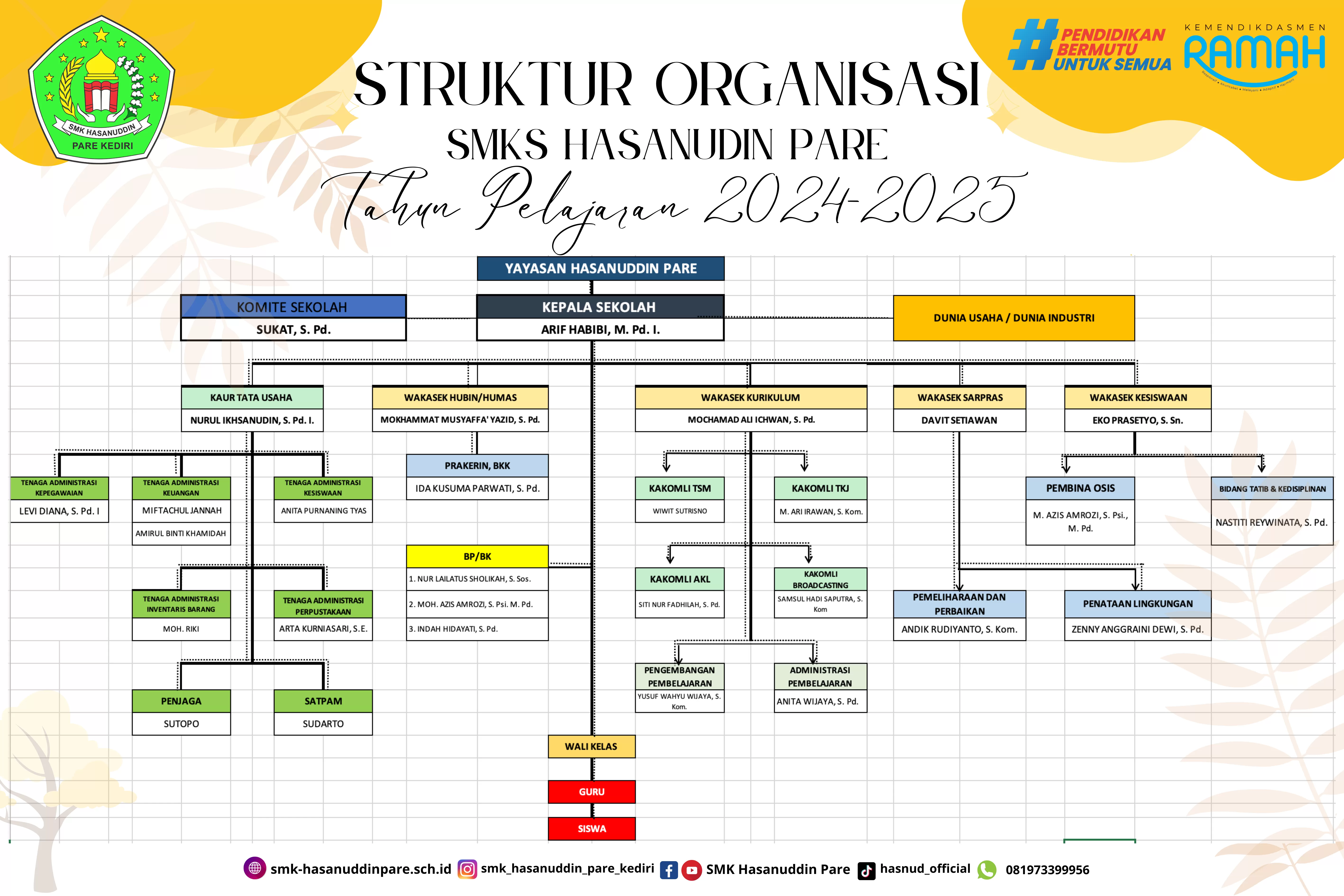 Terima kasih atas kunjungan Anda di website resmi SMKS Hasanudin Pare. Kami harap informasi yang tersedia dapat bermanfaat dan memenuhi kebutuhan Anda. Jangan ragu untuk menghubungi kami jika Anda membutuhkan informasi lebih lanjut atau memiliki pertanyaan. Mari bersama-sama menciptakan lingkungan belajar yang inspiratif dan berkualitas di SMKS Hasanudin Pare.